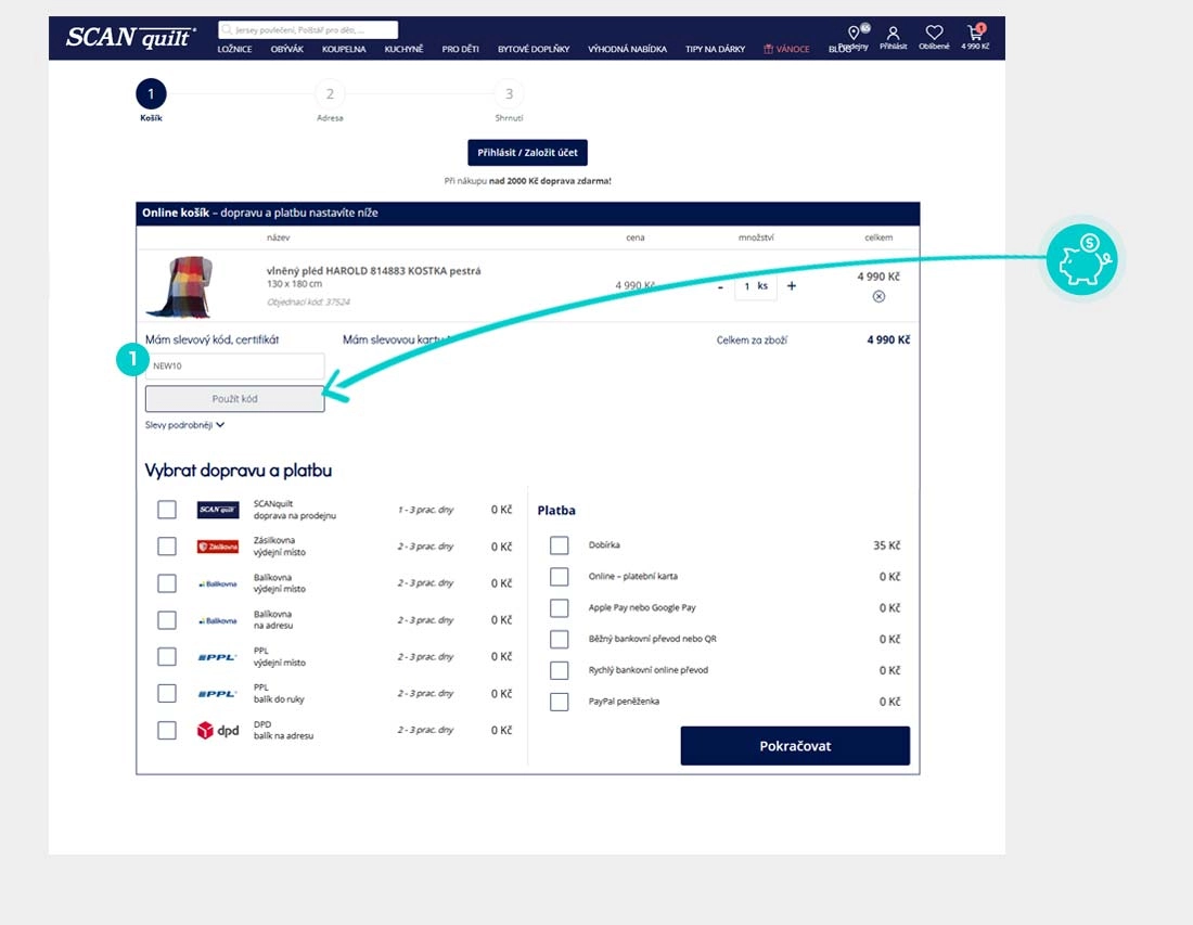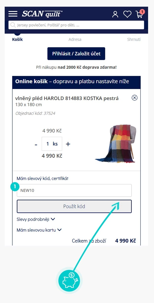 Nevíte, jak přesně fungují slevové kódy na SCANquilt.com? Nabízíme Vám postup, jak si při nákupu můžete uplatnit slevové kódy rychle a jednoduše: