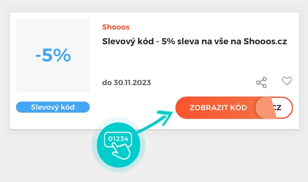 Vyberte si konkrétní slevový kód na naší stránce, který si chcete uplatnit v e-shopu Shooos.cz. Klepněte na oranžové tlačítko „Zobrazit kód“.