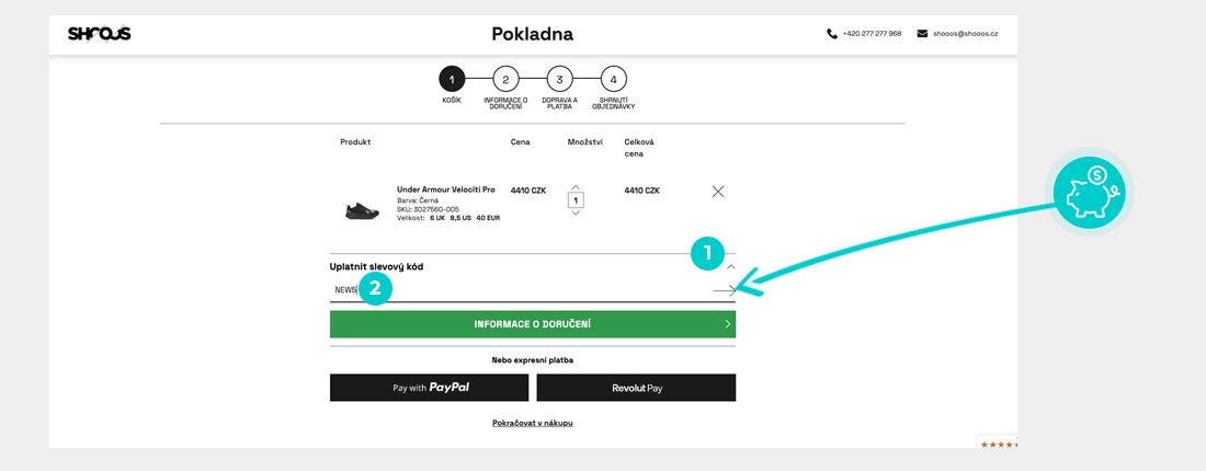 Nevíte, jak přesně fungují slevové kódy na Shooos.cz? Nabízíme Vám postup, jak si při nákupu můžete uplatnit slevové kódy rychle a jednoduše: