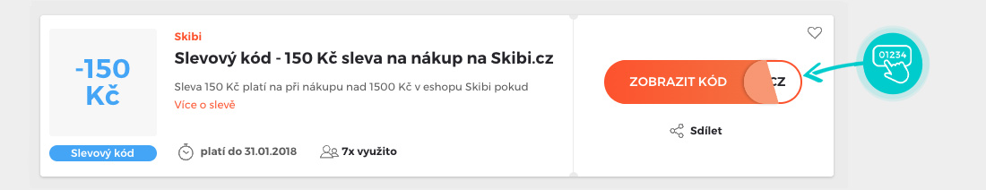 Vyberte si konkrétní slevový kód na naší stránce, který si chcete uplatnit v eshopu Skibi.cz. Klikněte na oranžové tlačítko "Zobrazit kód".