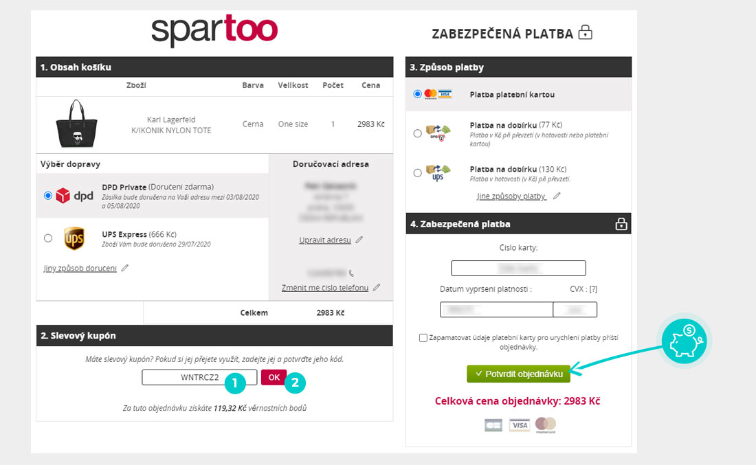 Na jednu objednávku lze obvykle použít pouze jeden slevový kód.