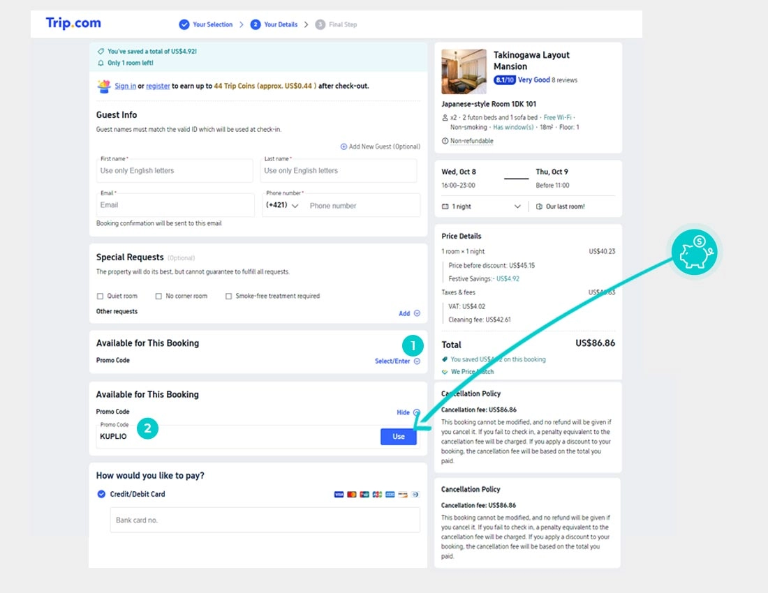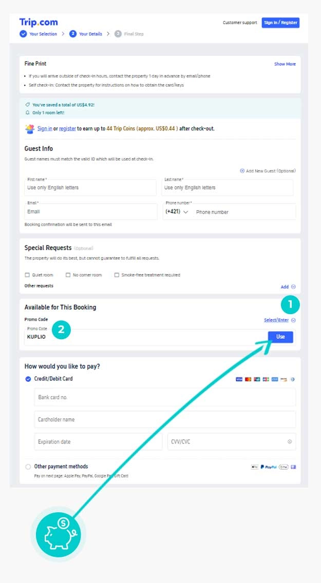 Nevíte, jak přesně fungují slevové kódy na Trip.com? Nabízíme Vám postup, jak si při nákupu můžete uplatnit slevové kódy rychle a jednoduše: