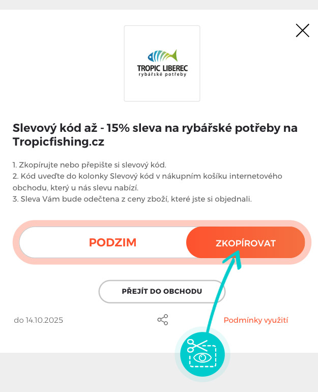 Zkopírujte nebo si opište slevový kód a klikněte na tlačítko "Přejít do obchodu". Následně budete přesměrováni přímo do e-shopu Tropicfishing.cz.