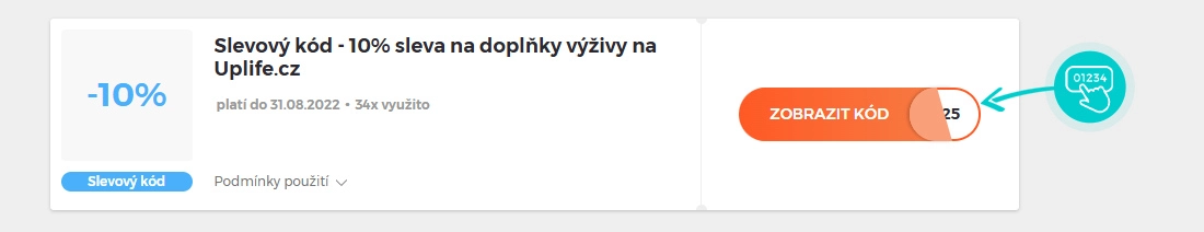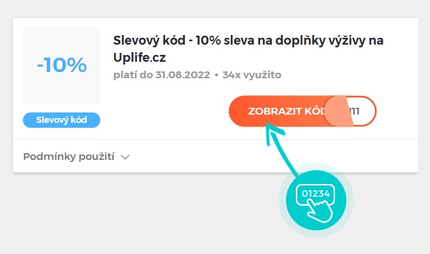 Vyberte si konkrétní slevový kód na naší stránce, který si chcete uplatnit v e-shopu Uplife.cz. Klikněte na oranžové tlačítko "Zobrazit kód".