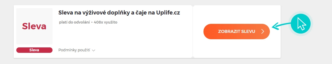 Vyberte si na naší stránce konkrétní Uplife slevu a klikněte na tlačítko "Získej slevu". Automaticky budete přesměrováni přímo na akční nabídku v internetovém obchodě Uplife.cz, kde můžete produkt nakoupit se slevou.