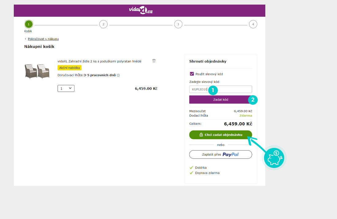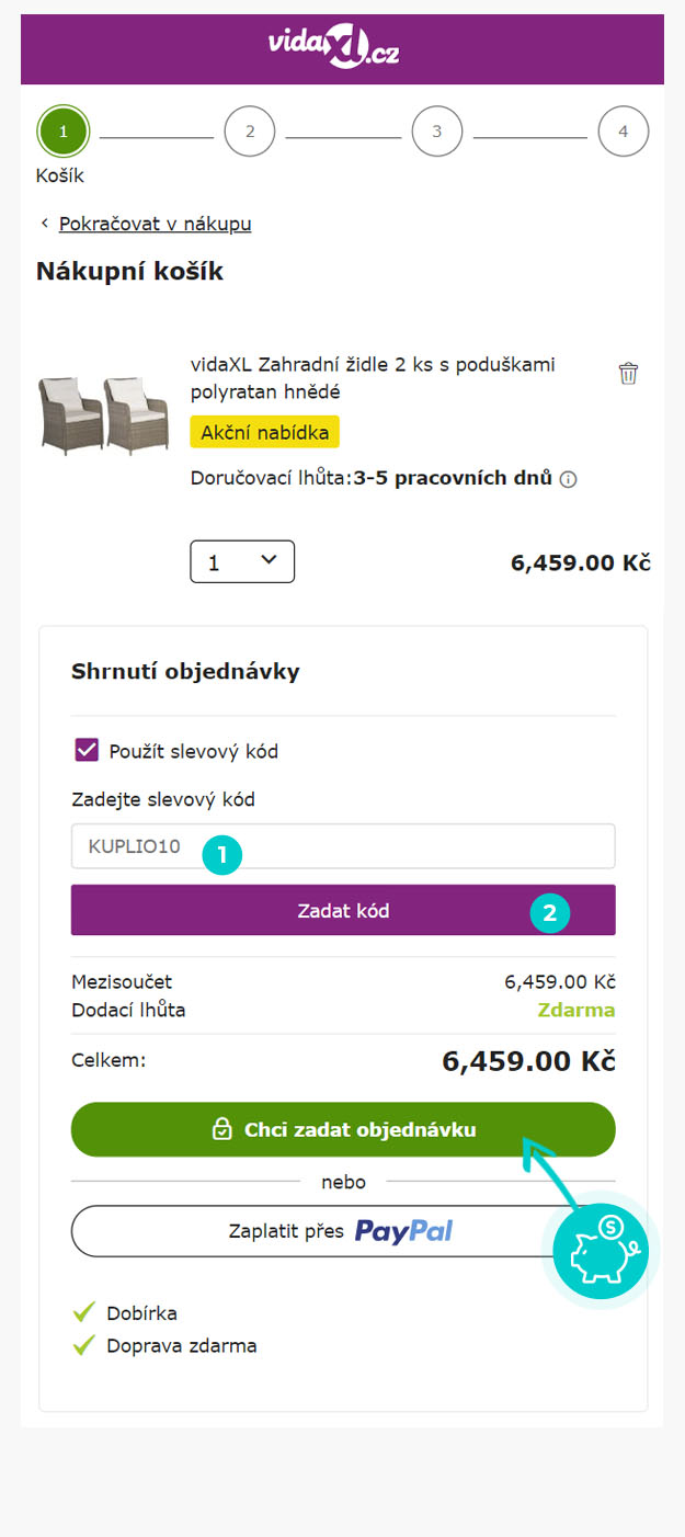 Číst více ...Nevíte, jak přesně fungují slevové kódy na vidaXL.cz? Nabízíme Vám postup, jak si při nákupu můžete uplatnit slevové kódy rychle a jednoduše: