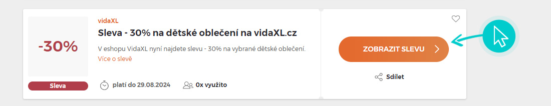 Vyberte si konkrétní slevový kód na naší stránce, který si chcete uplatnit v e-shopu vidaXL.cz. Klikněte na oranžové tlačítko "Zobrazit kód".