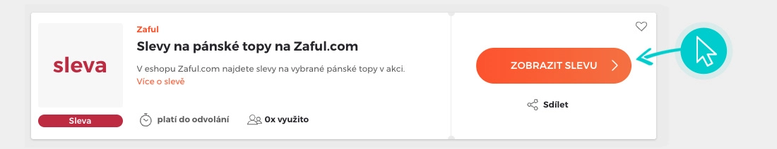 Vyberte si konkrétní slevový kód na naší stránce, který si chcete uplatnit v e-shopu Zaful.com. Klikněte na oranžové tlačítko "Zobrazit kód".