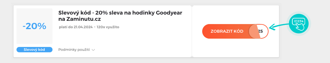 Vyberte si konkrétní slevový kód na naší stránce, který si chcete uplatnit v eshopu Zaminutu.cz. Klikněte na oranžové tlačítko "Zobrazit kód".