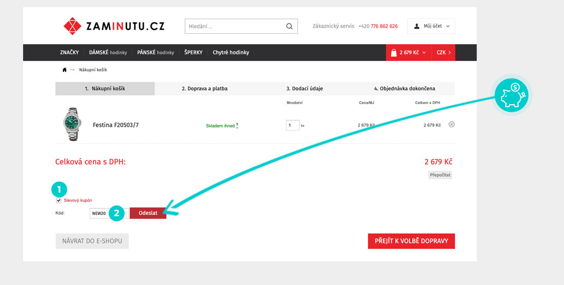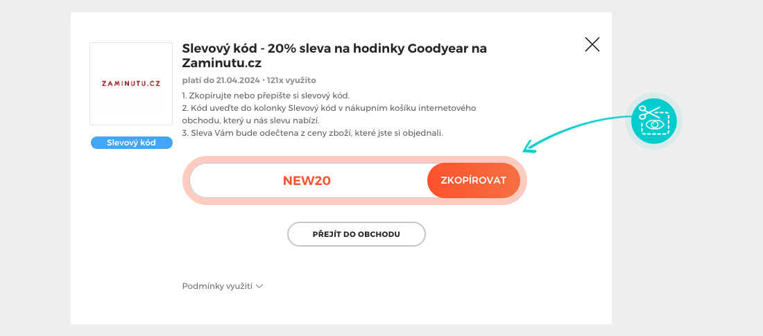 Zkopírujte nebo si opište slevový kód a klikněte na tlačítko "Přejít do obchodu". Následně budete přesměrováni přímo do eshopu Zaminutu.cz.