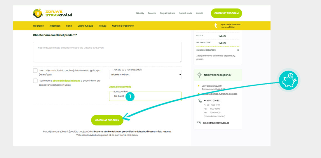 E-shop čas od času přichází se slevami na objednávku. Při větší objednávce může poskytovat vyšší slevu. A můžete si také vyzkoušet testovací menu na týden.